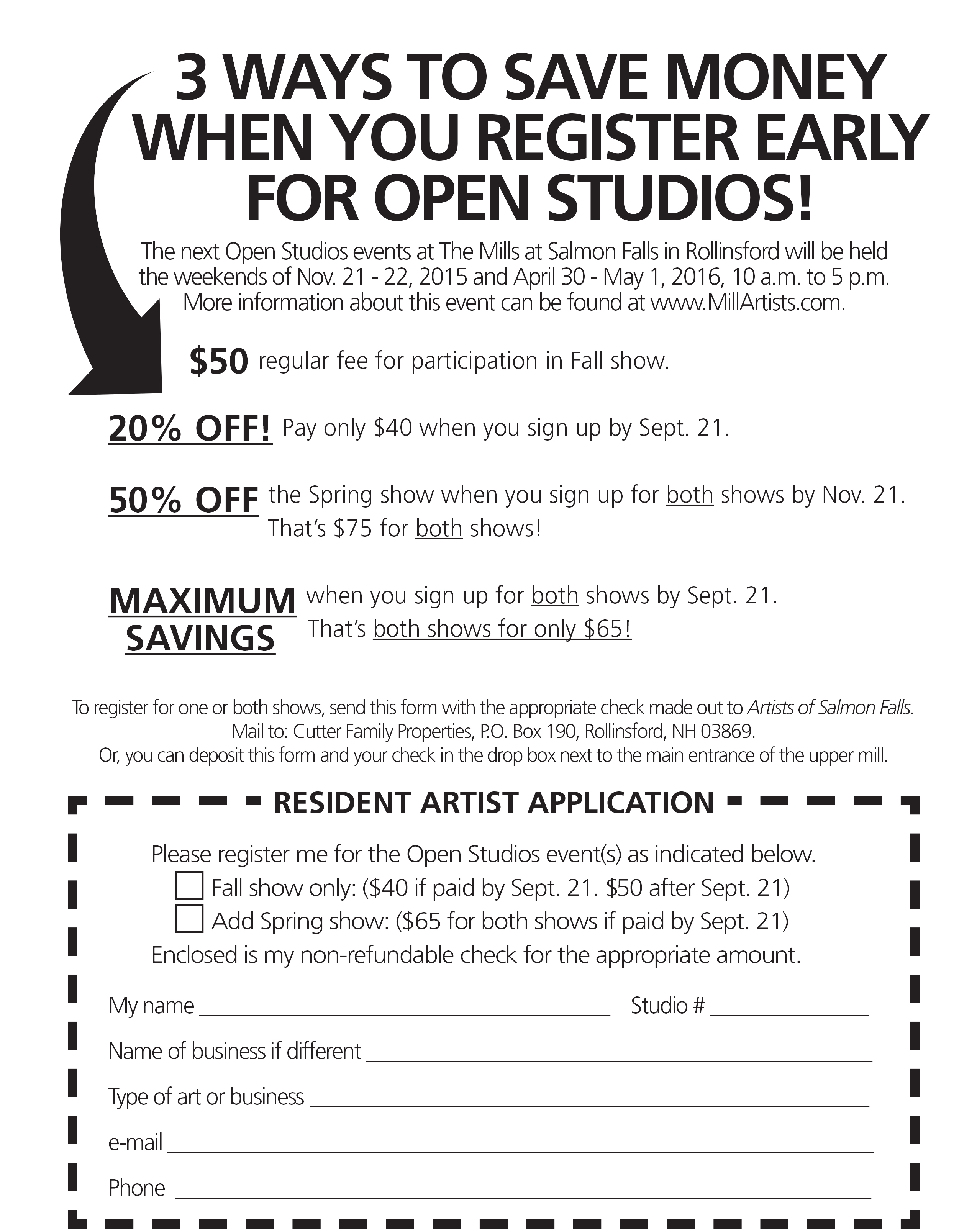 Physical Location: Artists of Salmon Falls 1 Front Street, Rollinsford, NH - 603) 749-8879